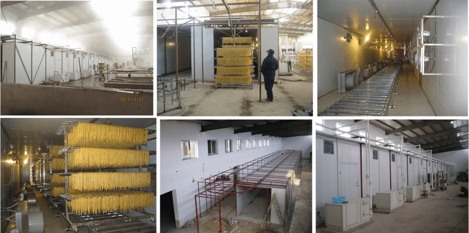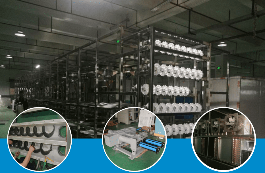 The standard drying line is 6 meters. Now we take a example of 24 meters modular system design, high temperature drying, efficient dehumidification and conveyor belt material transport mode, not only can batch uninterrupted material transport to the drying line, achieve mass production, multi-layer conveyor belt and back transport mode, but also can play the role of turning over materials in the transportation process, greatly increasing the contact area and contact time between materials and hot air. The drying speed is fast, and drying and dehumidification effect are good. The Full-Automatic Heat Pump Drysystem is enclosed in circulation, free of dust and particulate matter pollution to the atmosphere. The system is equipped with high-voltage electric field sterilization.